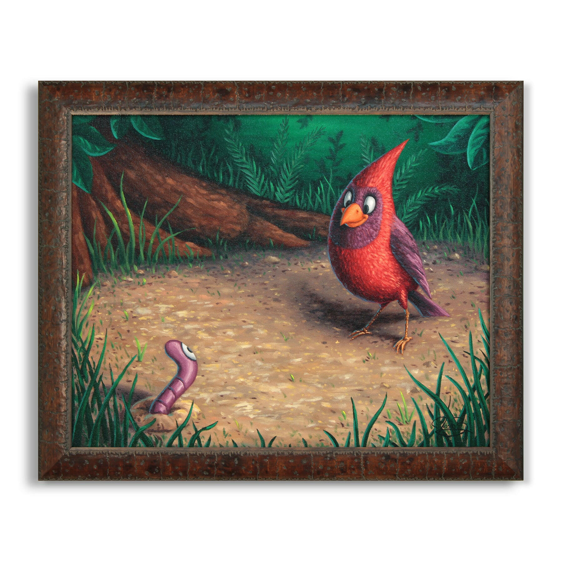 Cardinal and a Worm - Original Painting