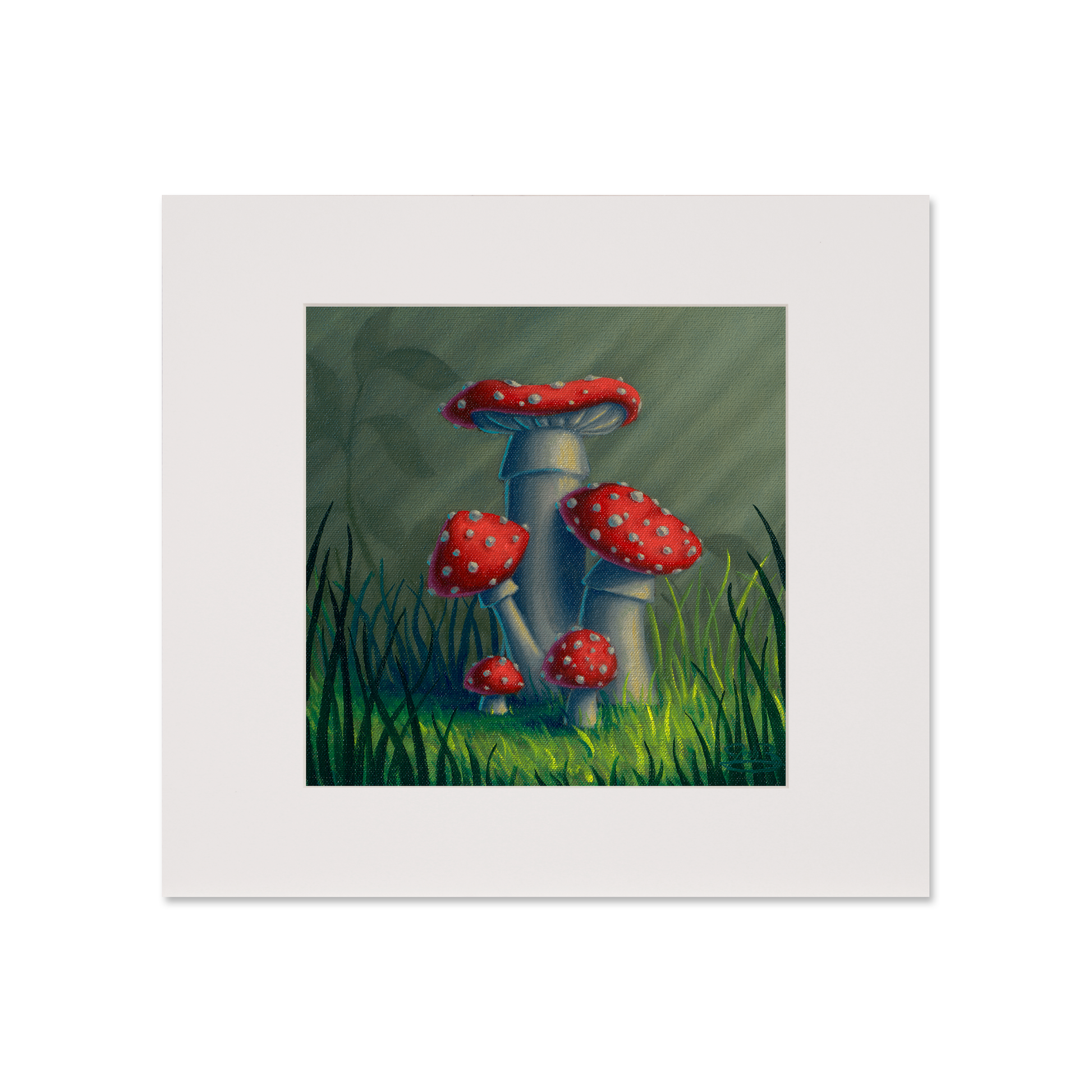‘Mushrooms #3’ is a print of the first in a series of stylized mushrooms paintings.