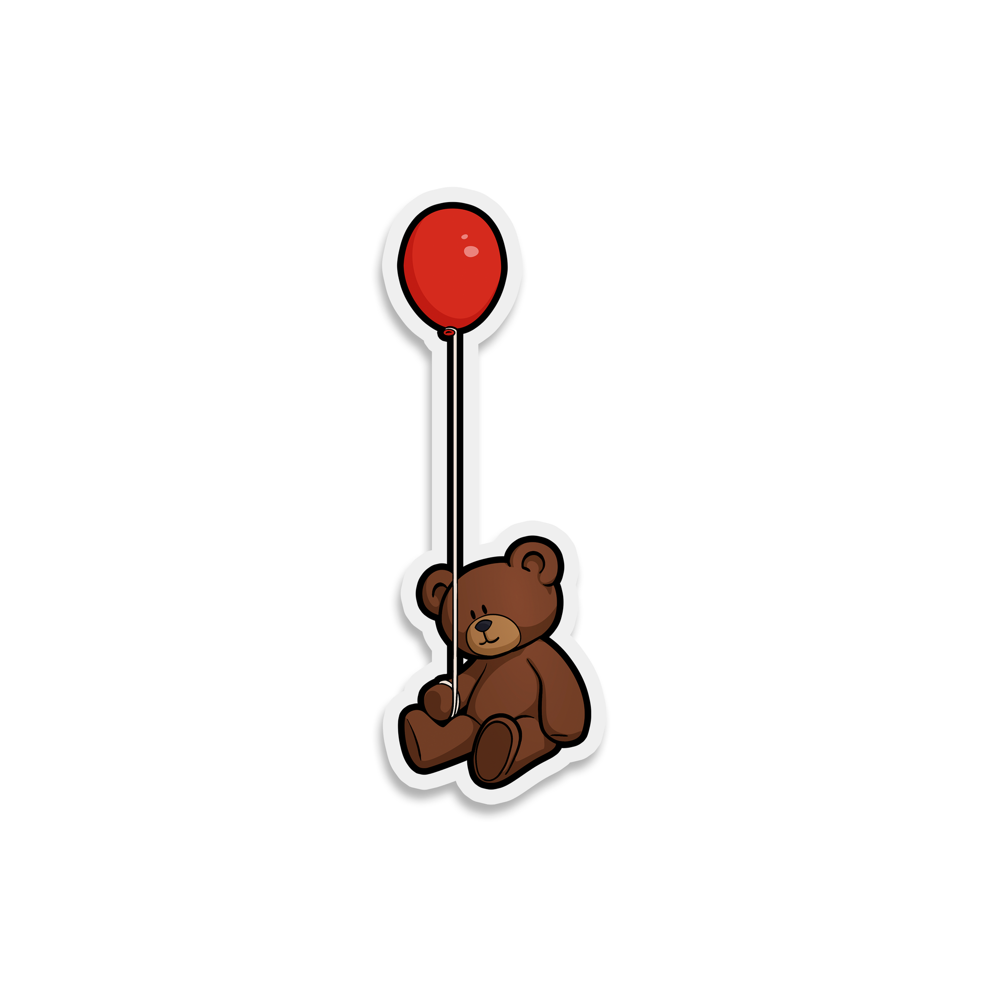 A die cut sticker from "Teddy Bear and a Balloon" sitting or carried.